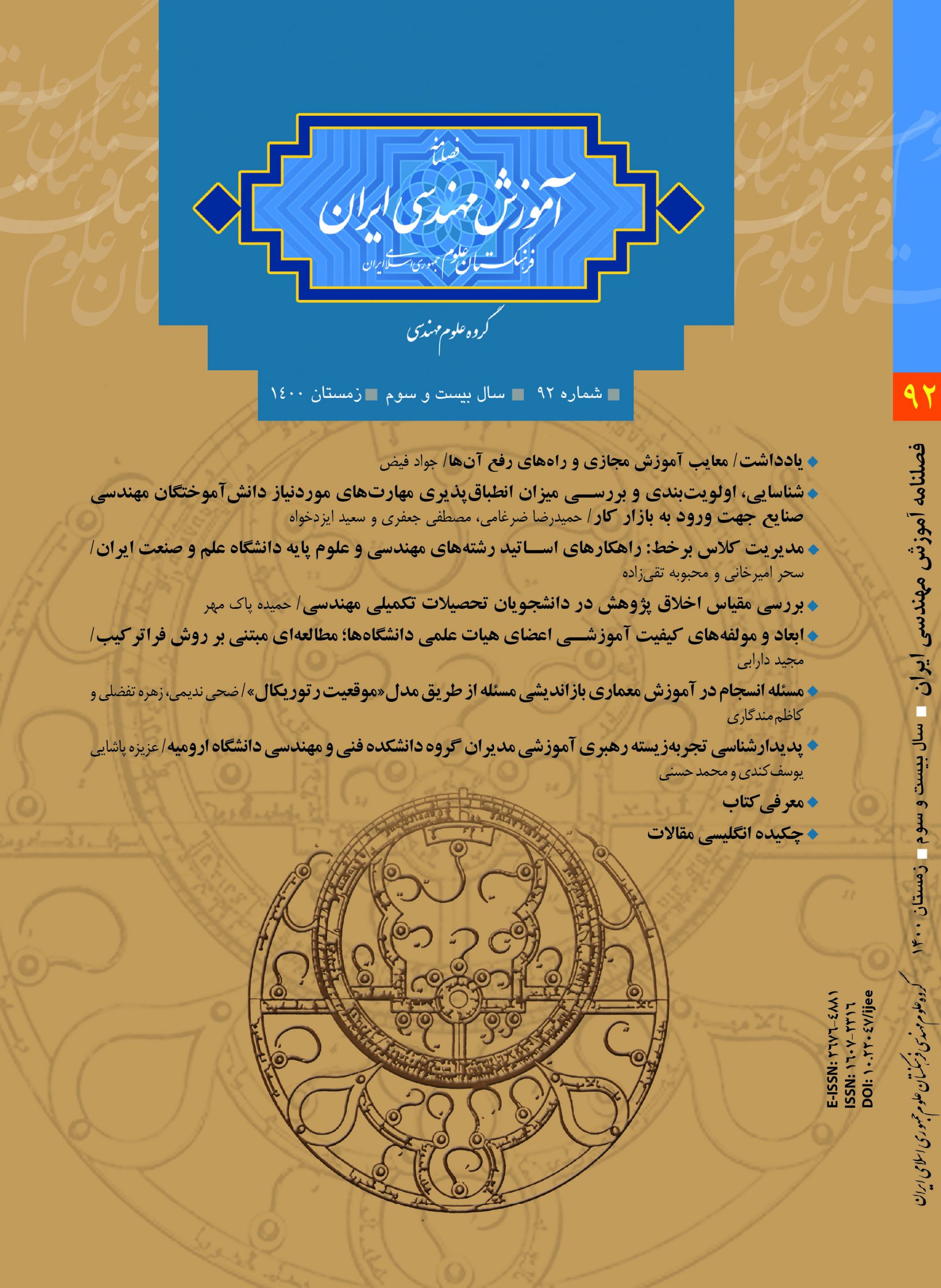 هدف از انتشار فصلنامه سعی و مشارکت در ارتقا و توسعه کمی و کیفی آموزش مهندسی و آماده کردن زمینه برای تربیت مهندسانی آگاه به دانش روز، خلاق، نوآور، مدبر و توانا جهت فعالیت در بخشهای خدمات کشاورزی و صنعتی و اداره و راهبرد صنعت و فناوریهای جدید کشور است. الف. توسعه آموزش مهندسی( – مرزهای نو در آموزش مهندسی – طراحی دروس و برنامه های جدید – آینده آموزش مهندسی در ایران و جهان- استاندارد آموزش و آموزش استاندارد در مهندسیو …) ارزشیابی، کیفیت و نوآوری – شناخت شناسی و تعیین عوامل مؤثر در تفکر و دانش مهندسی – ارزشیابی برنامه ها و دروس مهندسی – روش¬ های نوین یاددهی و یادگیری در آموزش مهندسی – چگونگی استفاده از روش¬¬ ها، ابزارها و معیارهای ارزیابی در توسعه مهندسی – کیفیت تدریس اعضاء هیأت علمی در ارتقا آموزش مهندسی تحقیق و پژوهش ( – جایگاه تحقیق و پژوهش در آموزش مهندسی ،- پژوهش در آموزش مهندسی و …) ارتقای فرهنگ علوم انسانی ( – نوآوری، خلاقیت و کارآفرینی در آموزش مهندسی – نقش علوم انسانی در آموزش مهندسی آموزش در سایر رشته های علوم(ریاضی، فیزیک، شیمی و روانشناسی و علوم تربیتی)