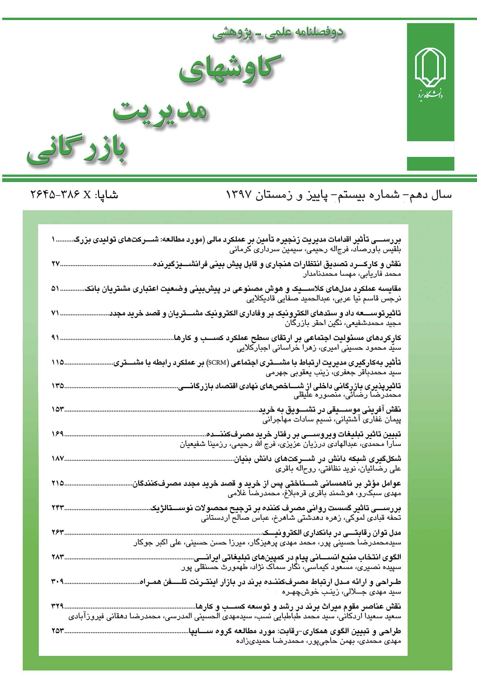 چشمانداز: قرار گرفتن در صدر نشریات دو زبانه (فارسی و انگلیسی) پر استناد در حوزه کاوشهای مدیریت بازرگانی. ماموریت: ارتقاء قابلیت ها و توسعه مرزهای دانش حوزه کاوشهای مدیریت بازرگانی به شرح زیر: ـ تبیین فلسفه و روش شناسی کاوشهای مدیریت بازرگانی؛ ـ نظریه پردازی، تولید الگو و مدلسازی برای دانش مدیریت بازرگانی با گرایشهای آن؛ ـ بسترسازی شیوه های کاربردی کردن یافته های کاوشهای مدیریت بازرگانی؛ ـ فراهم ساختن زمینه های توسعه مطالعات بین رشته ای حوزه کاوشهای مدیریت بازرگانی؛ ـ مرجع بهره گیری محققان و مسؤلان برای راهیابی و حل مسائل مدیریت و برنامه ریزی بازرگانی. اهداف: اهداف دوفصلنامه به شرح زیر است: ـ تبیین رشد و توسعه کاوشهای مدیریت بازرگانی در حوزهها علمی؛ ـ توسعه نظاممند خلاقیت و نوآوری برای گسترش ظرفیتهای کسب، ایجاد، تولید و خلق، تسهیم و بهرهگیری از ایدهها، نظریهها، الگوها، مدلها، ساختارها، فرایندها، سازوکارها، رفتارها و عملکردهای نوین در علوم مدیریت بازرگانی؛ ـ ارتقای بنیانهای پایدار برای نشر دانش مدیریت و برنامهریزی بازرگانی در کشور؛ ـ تلاش برای گسترش انگیزهها و اشتیاق محققان جهت نشر دستاوردهای پژوهشی؛ ـ تعالی رشتههای بازرگانی با تخصصهای مرتبط.