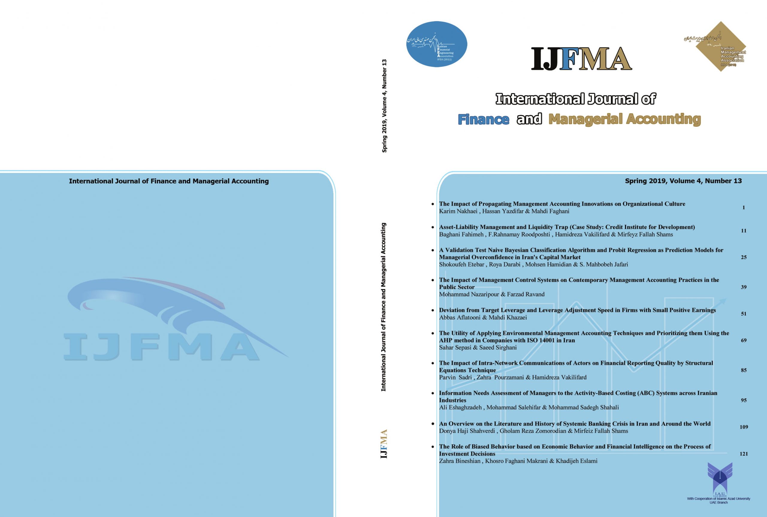The International Journal of Finance and Managerial Accounting (IJFMA) is a free (journal devoted to International finance and management accounting topics. The Journal with four quarterly issues publishes leading research across all major research fields in finance and management accounting. Its primary objective is to contribute to the expansion of knowledge related to the theory and practice of finance and management accounting. To encourage and sustain the growth of finance and managerial accounting, it welcomes contributions carrying theoretical and methodological value in a comprehensive set of subject areas, as clarified in the Journal coverage. It is open to research approaches including analytical, archival, case study, conceptual, experimental, and method survey. The journal not only serves as a filter to ensure that only the highest quality work is disseminated, but also provides timely and helpful feedback to authors to help them developing an effective research and publication project. As such, dedicated subsections of the Journal will be devoted to present articles from recently completed doctoral theses. The Editorial Board welcomes the proposal of special issues on specific topics to be coordinated by appointed Guest editors under the Board coordination